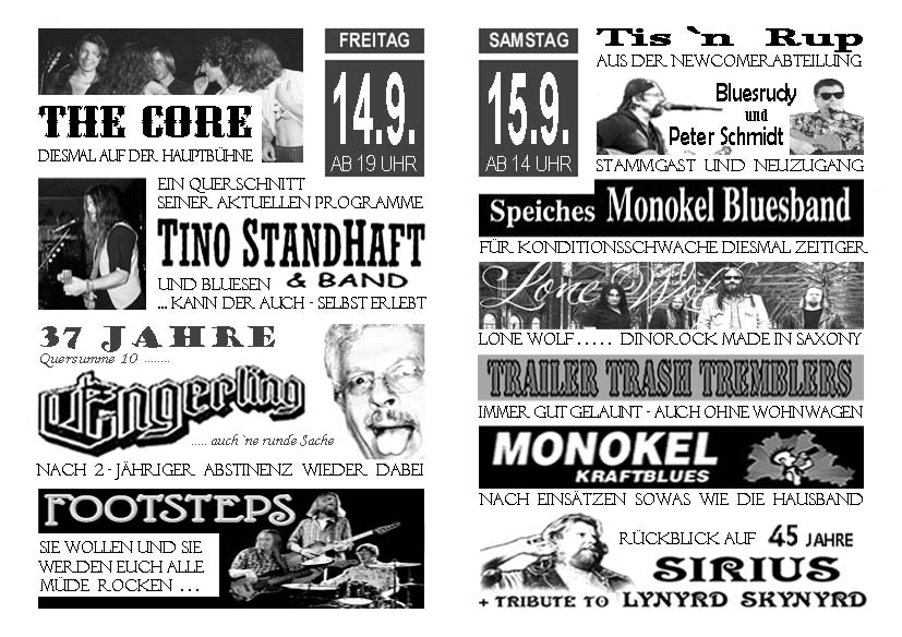 | Sa. | 13.09. | Vollmershain, Freibad Lausitz Blues & Heike May Open Air Klassiker siehe www.sachsenrock.info |